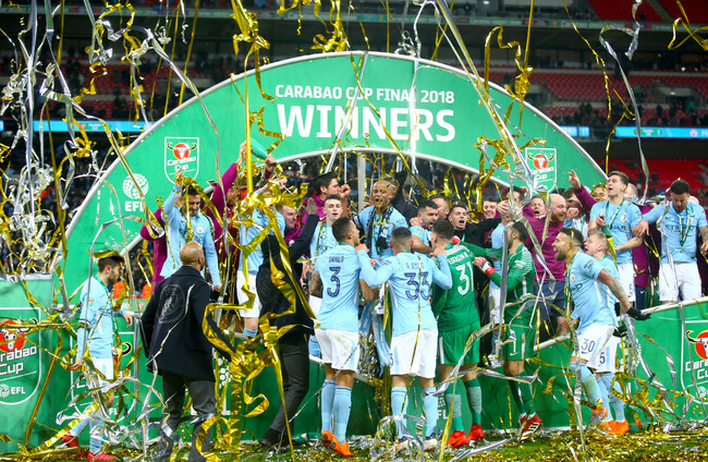THERE WERE JOYOUS scenes in Wembley among the Manchester City contingent, after they cruised to a 3-0 victory in the EFL Cup final.