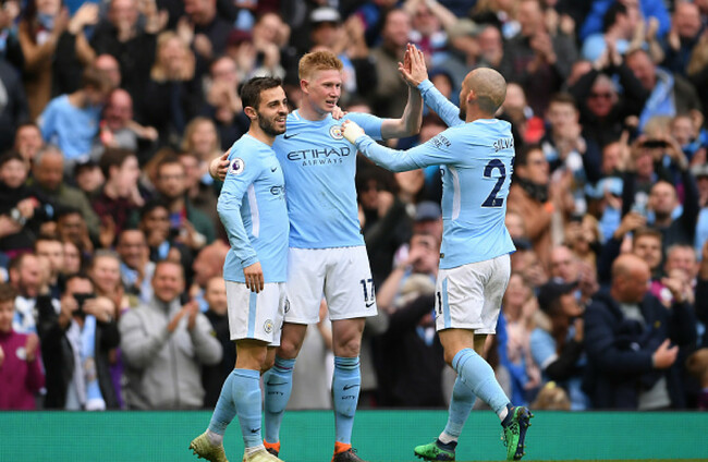 MANCHESTER CITY TURNED on the style in their first match since being confirmed Premier League champions, as Raheem Sterling and Kevin De Bruyne led the way in a 5-0 win over Swansea City.