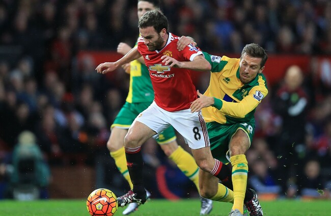 36 mins – Mata chops down Hoolahan, and Norwich have themselves a free-kick in a good area — about 30 yards out.