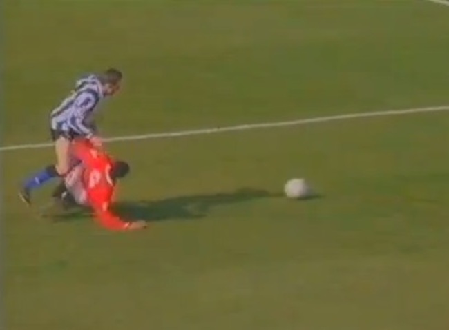 Ince brings Waddle down. Credit: YouTube screengrab