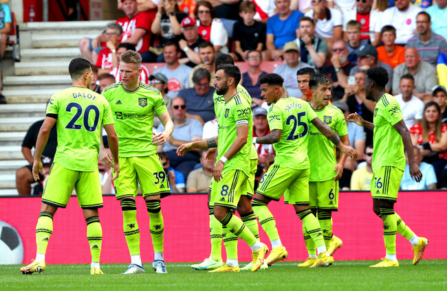 A flurry of passes scythed through the Southampton midfield and Diogo Dalot curled a cross towards Fernandes, who guided a fine volley past Bazunu from just inside the area.