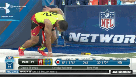 The disclaimer here is that it’s dumb to judge how good a football player someone is by a random sampling of exercises. But the combine really matters to NFL people, and Te’o probably hurt himself by not putting up some freaky numbers.