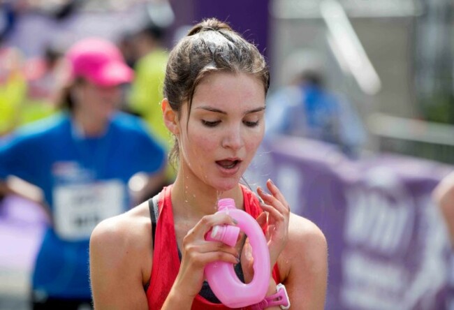 20. Lauren Hudson from Templeogue takes a well-deserved drink after finishing her 10km.
