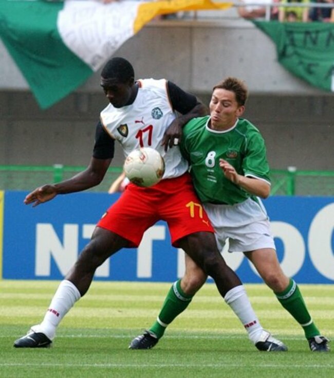 Battling with Ireland's Matty Holland in the 2002 World Cup. Credit: Kirsty Wigglesworth/PA Archive/Press Association Images