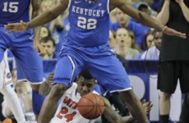 Florida forward Casey Prather (24) reaches for a loose ball in between the legs of Kentucky forward Alex Poythress Steve Helber/AP/Press Association Images