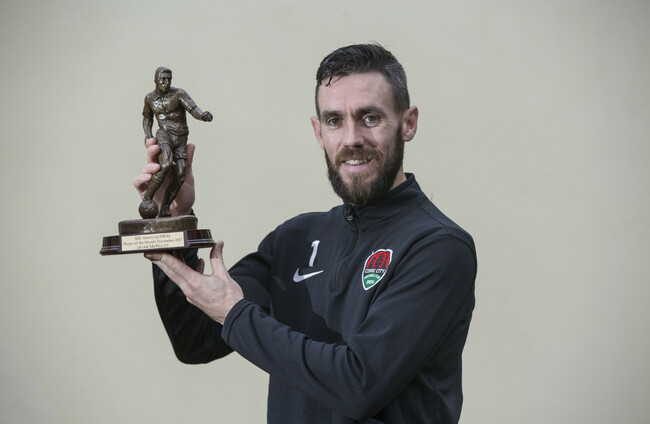 The 37-year-old goalkeeper proved Cork City’s penalty shootout hero in their FAI Cup final victory over Dundalk – keeping out Michael Duffy’s spot-kick at the Aviva Stadium earlier this month.