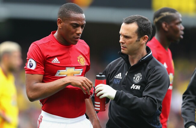 A clash of heads with Daryl Janmaat in the 26th minute of the match at Vicarage Road left the Dutchman and Martial requiring medical attention. Both played on, but a challenge eight minutes later left the United forward looking groggy as he made his way off when being replaced by Ashley Young.