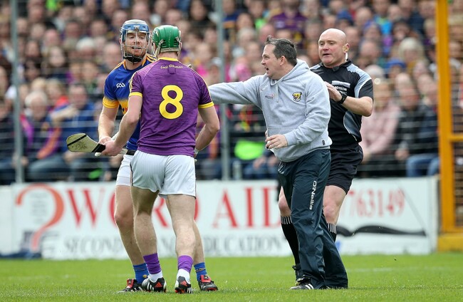Model County manager Fitzgerald, irate in the aftermath of Tipperary’s second goal, came onto the pitch to remonstrate with match referee Diarmuid Kirwan, who didn’t award a free to James Breen in the passage of play that saw the Wexford defender turned over before Noel McGrath netted.