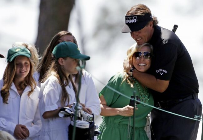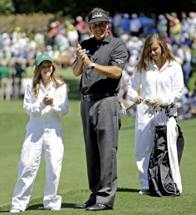 Phil Mickelson — who shot four-under — was joined by wife Amy and his daughters