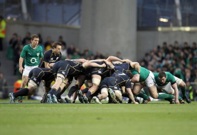 The visitors got off to a better start when Ireland did not retreat enough following a penalty against the scrum. Greg Laidlaw had the simple task of slotting over a penalty in front of the posts.