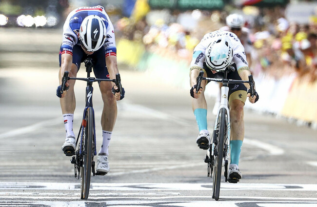 A stage characterised by non-stop attacking was raced at an average speed of 49.1kmh over rolling terrain, the fastest stage of this year’s Tour and the fifth fastest ever, but after all that effort it came down to a bike throw on the line.