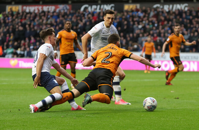 But Preston reduced the deficit within a minute through Jordan Hugill, before a Conor Coady own goal 12 minutes from time led to a frantic finale in which Preston’s Irish midfielder Alan Browne was sent off.