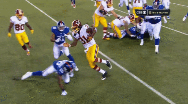 Washington did have a great opportunity to spark a comeback with more than nine minutes still on the clock but Matt Jones was stripped of possession as he dived for the line and fumbled the ball out of the endzone, giving the Giants possession.