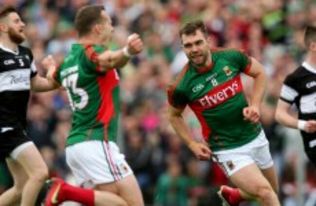 Mayo 6-21 Sligo 2-10 Mark Donaldson on target with Mayo’s latest point and Alan Dillon also fisting over another one.
