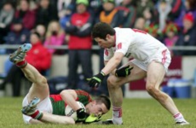 Tyrone stormed out of the blocks in the opening half with Mayo struggling to break down their rigid defence, as the visitors quickly went 0-4 to 0-1 ahead thanks to scores from Darren McCurry, Cathal McShane, Matti Donnelly and a free from Sean Cavanagh.