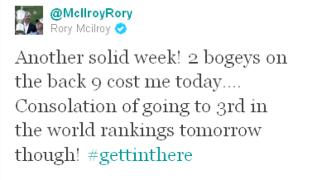 “My competitive spirit is such that I would rather have gone to third in the world by winning this week,” he is quoted as saying by golfbytourmiss.com. “If I were to close out these tournaments I would go to No. 3 in the world or No. 2 but I just haven’t been able to manage that these two weeks.”