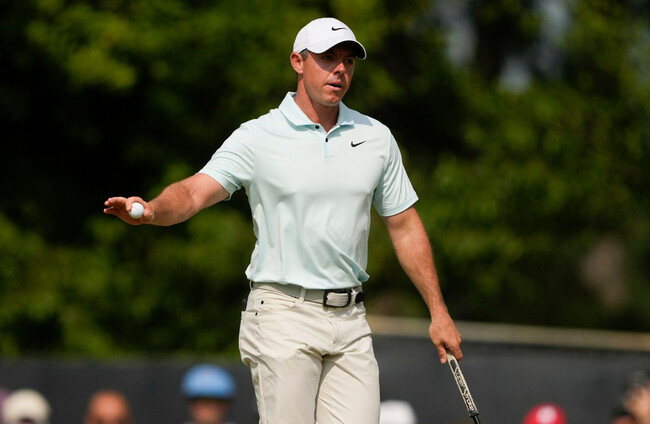 From a poor lie, McIlroy chipped into the bunker in front of him and narrowly failed to hole a 20-foot par putt.