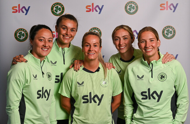 Megan Connolly (second from right) is a 2024 recipient of the Sky WNT Fund, alongside Megan Campbell, Caitlin Hayes, Lily Agg and Sophie Whitehouse. David Fitzgerald/SPORTSFILE