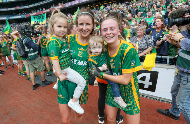 Thynne celebrates with her niece Mia after the All-Ireland final victory.