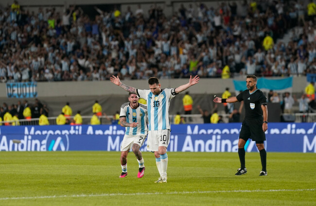 Messi had a hand in the opening goal, crashing another free-kick off the woodwork, with Almada, a second half substitute, following up to slot home.
