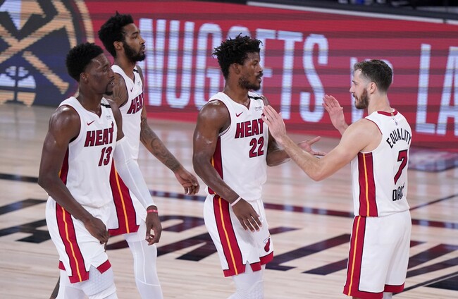 Goran Dragic followed up two free throws with a three-pointer over Boston big man Daniel Theis that put the Heat ahead 100-95 with 1:42 remaining and Miami powered to the finish line.
