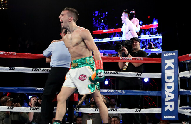 A Conlan onslaught against the ropes saw the referee intervene, and not four minutes after he emerged to a hair-raising reception at Madison Square Garden’s Theater, the Irishman was celebrating his sixth win as a professional.