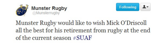 MUNSTER HAVE ANNOUNCED that Mick O’Driscoll will retire at the end of the current season.
