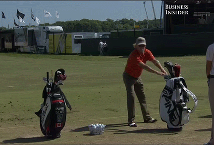 Prior to teeing off for the second round of this week’s British Open, Jimenez gave us another glimpse of the routine that comes complete with puffs on his ever-present cigar. Unfortunately, today’s warm-up was interrupted by somebody seeking a handshake. You can see a more extended version of the warm-up in the video below from the 2011 Open Championship…