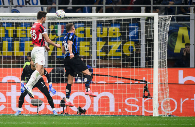 MATTEO GABBIA FIRED AC Milan to a stunning late derby win over Inter Milan on Sunday with a bullet header which earned his team a 2-1 win and local bragging rights, while Roma thumped Udinese 3-0 as fans protested the shock sacking of Daniele De Rossi.