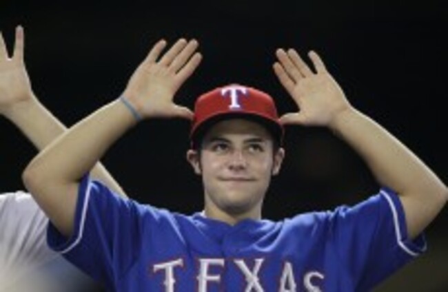 A Rangers fan makes a deer antler salute. Tony Gutierrez/AP/Press Association Images