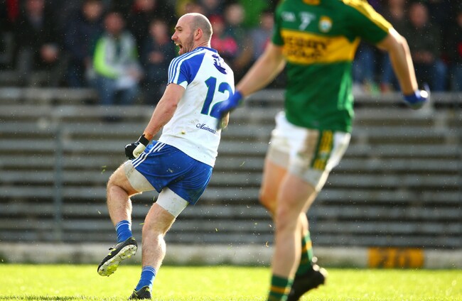 As the afternoon lurched between bright sunshine and heavy showers Monaghan remained patient and probed a packed Kerry defence until Conor McManus brought a fine save from Brendan Kealy. McCarron picked up the loose ball and lashed the ball to the net to drag the visitors back into the contest.