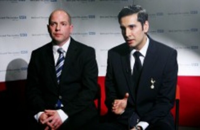Bolton Wanderers team doctor Dr Jonathan Tobin (left) and Tottenham Hotspur team doctor Dr Shabaaz Mughal talk to reporters at the London Chest Hospital. Gareth Fuller/PA Wire/Press Association Images