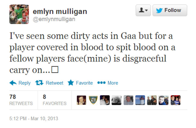 The Leitrim captain alleged, ‘For a player to spit blood in a fellow player’s face is disgraceful carry on.’
