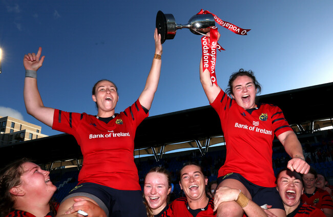MUNSTER LIFTED THE Vodafone Women’s Interprovincial Championship trophy for the first time since January 2023, delivering a dominant performance to beat Leinster 50-15 at Energia Park.