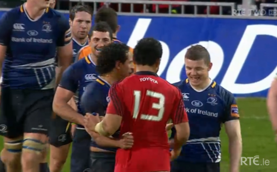 True blood and thunder stuff from both sides. Leinster go into second in the league and Munster have no hopes of top four, which was an outside bet even before kick-off. O’Driscoll in perhaps his final inter-pro game with the game-winning try.