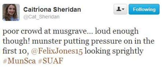 A lot of kidlings out and chewing sweets in Musgrave. Nearly every head has a red woolly Munster hat and they applaud the two sides on.