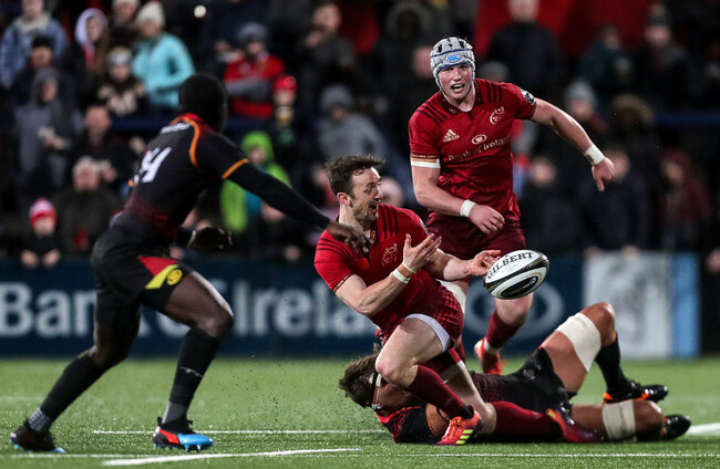 Munster: Mike Haley; Andrew Conway, Chris Farrell (Dan Goggin, 17), Rory Scannell, Darren Sweetnam; Tyler Bleyendaal (C) (JJ Hanrahan, 65), Neil Cronin (Alby Mathewson, 49); Jeremy Loughman (Liam O’Connor, 49), Niall Scannell (Rhys Marshall, 62), John Ryan (Stephen Archer, 62); Jean Kleyn, Billy Holland (Darren O’Shea, 62); Fineen Wycherley, Chris Cloete, Arno Botha (Gavin Coombes, 68).