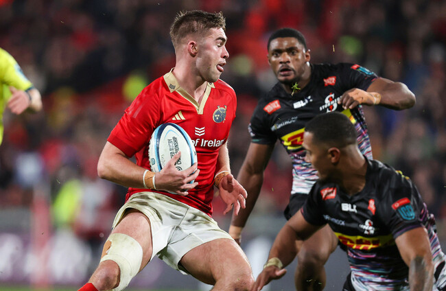 Munster: Shane Daly; Calvin Nash, Antoine Frisch, Alex Nankivell, Shay McCarthy; Jack Crowley, Craig Casey (Conor Murray, 59); Jeremy Loughman (Josh Wycherley, 48), Scott Buckley, John Ryan (Stephen Archer, 48); Edwin Edogbo (Tom Ahern, 53), Tadhg Beirne; Peter O’Mahony (Jack O’Donoghue, 41), John Hodnett (Alex Kendellen, 68), Gavin Coombes.
