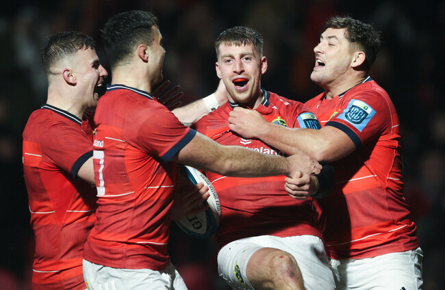 Tries by Scott Buckley (twice), Jack O’Donoghue, Paddy Patterson and the flying Coombes earned Munster five crucial points in the URC table: the southern province have temporarily moved up as far as fifth ahead of their playoff-chasing rivals’ weekend fixtures.