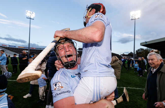 Na Piarsaigh's Daithí Dempsey and Keith Dempsey celebrate at the final whistle. Ben Brady / INPHO