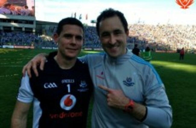 Dublin skipper Stephen Cluxton with NADA's Martin Kennedy after the All-Ireland football final. NADA