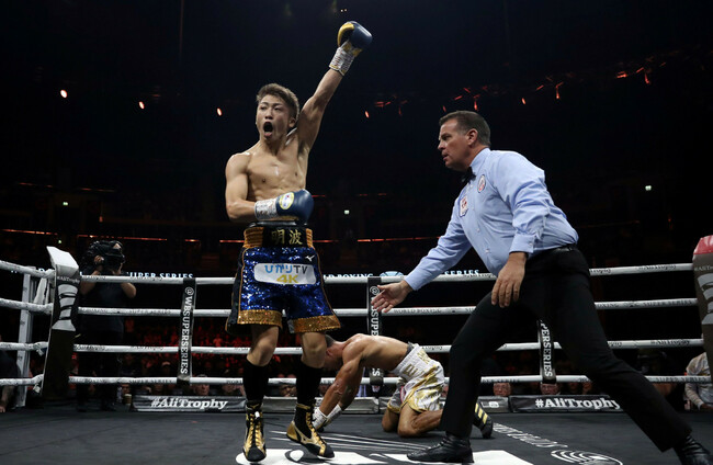 After hammering away on Dipaen’s body, Inoue finally put the challenger away with a big left that sent him down to the canvas.