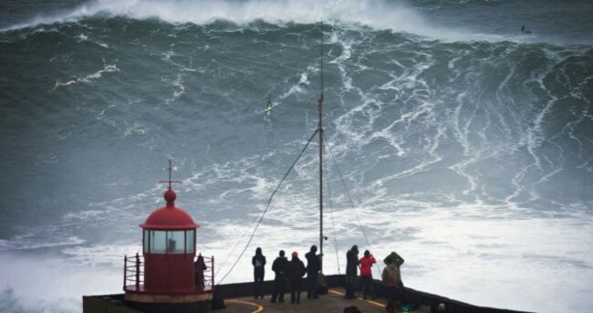 WITH EUROPE GETTING battered by storms over the weekend, Portugal’s surf hotspot, Nazare witnessed some incredible waves yesterday.