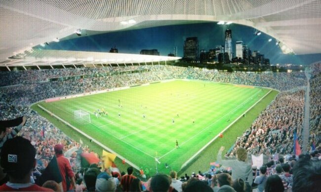 The proposal shows a partially covered stadium