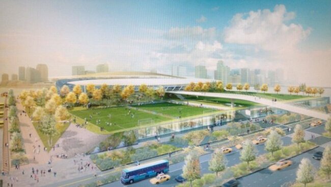 NEW YORK CITY FC is still looking for a stadium to call home when they begin play in 2015 and renderings have leaked on Reddit that show one proposal for the west side of Manhattan (via SportsGrid.com).