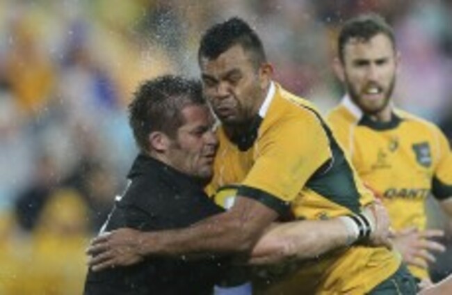 The All Blacks relished the wet slippery conditions and peppered the Wallabies with short and high kicks to keep them under pressure in their half.