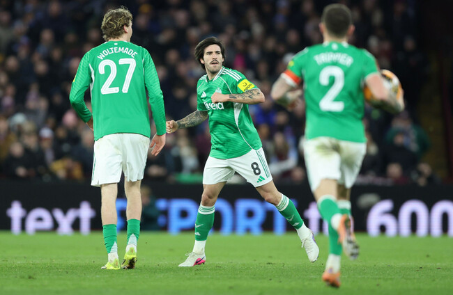 SANDRO TONALI SCORED twice as Newcastle overcame a raft of baffling refereeing decisions by Chris Kavanagh to beat 10-man Aston Villa 3-1 in a pulsating FA Cup fourth-round tie.