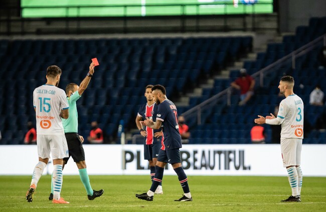 Neymar was red-carded after a VAR review, while teammates Layvin Kurzawa and Leandro Paredes were also sent off. Marseille striker Dario Benedetto and defender Jordan Amavi were also expelled.