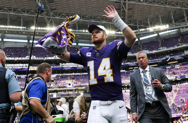 Darnold found Justin Jefferson and Aaron Jones for first quarter touchdowns and then in the third quarter connected with Jalen Nailor for the third straight game before completing the rout with two yard pass to tight-end Johnny Mundt in the fourth quarter.
