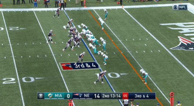 Even with White (white) clearing out the safety help on that side of the field, Edelman may not have scored a touchdown, but he would have easily had the first down.
